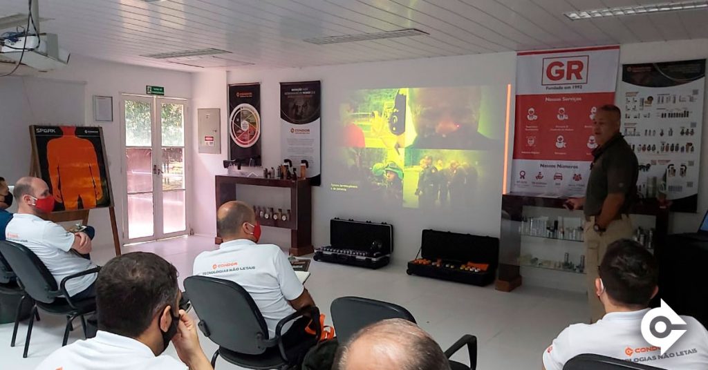 O local do curso foi na fábrica da Condor, no Rio de Janeiro, e foram ministradas aulas práticas e teóricas sobre a utilização das TNL, com foco para o mercado de segurança privada e o conceito do uso proporcional da força.