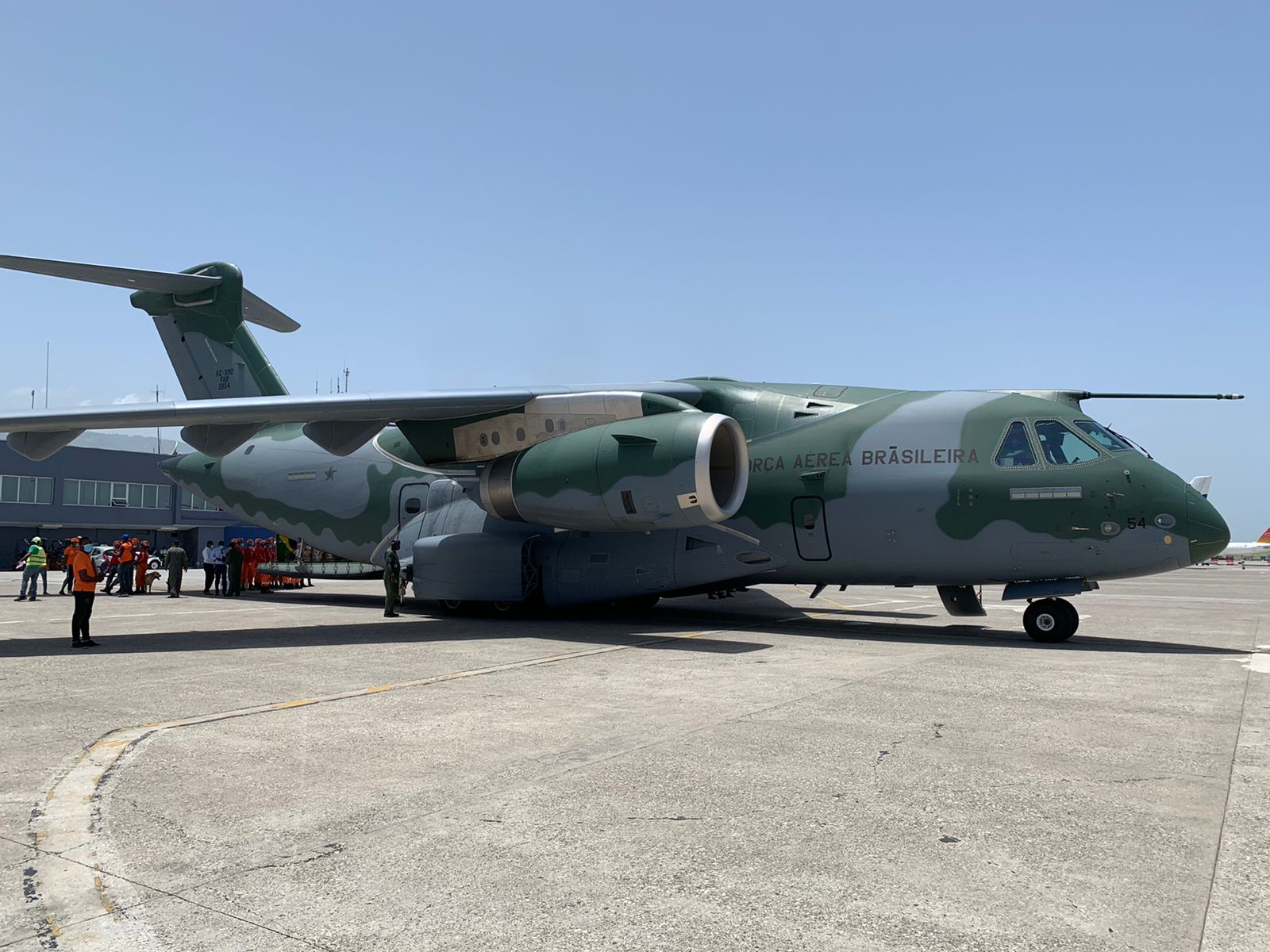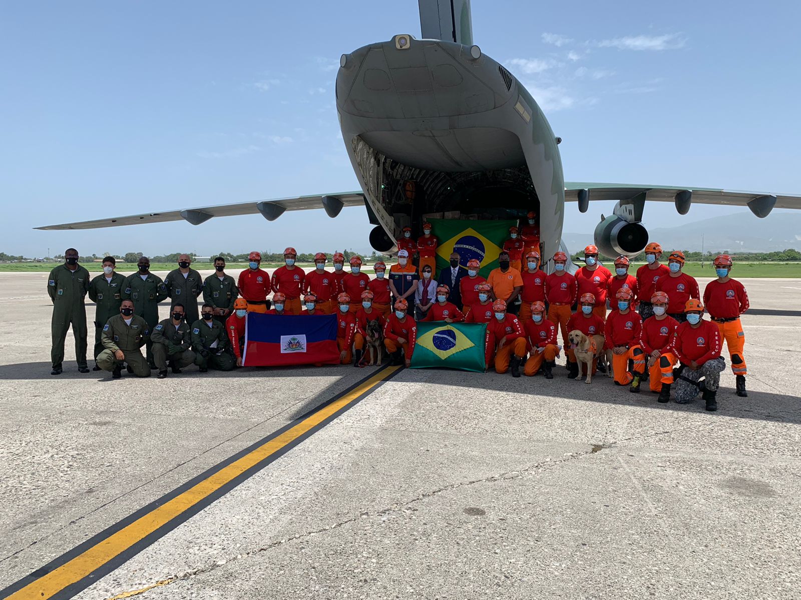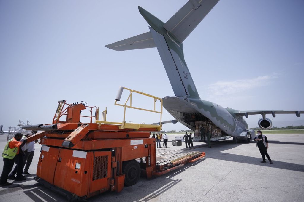 Na tarde de hoje, por volta das 13h15min (horário de Brasília), a aeronave KC-390 Millennium da Força Aérea Brasileira, matrícula FAB 2854, pousou no Aeroporto Internacional Toussaint Louverture, em Porto Príncipe, capital do Haiti, com 32 bombeiros, sete toneladas de equipamentos de emergência e três toneladas e meia de medicamentos para socorrer a população do país caribenho, após o terremoto que o atingiu, no dia 14, causando milhares de mortos, feridos e desabrigados.