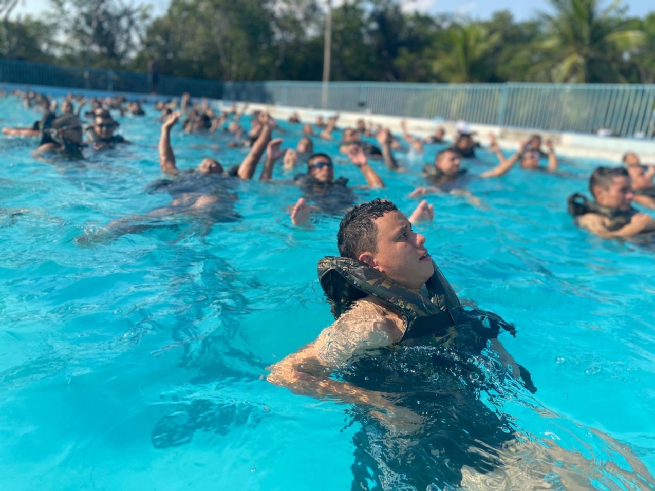 Já no dia 5 de setembro, por intermédio do Comando de Fronteira Rio Negro e 5º Batalhão de Infantaria de Selva (Cmdo Fron RN/5º BIS), foi realizada a instrução de natação com os militares que integram a Força Surara (1ª Companhia de Fuzileiros do Cmdo Fron RN/5º BIS). A instrução teve por objetivo adaptar os militares em atividades no meio aquático, testar equipamentos de proteção individual (colete salva-vidas) e apresentar técnicas de natação.