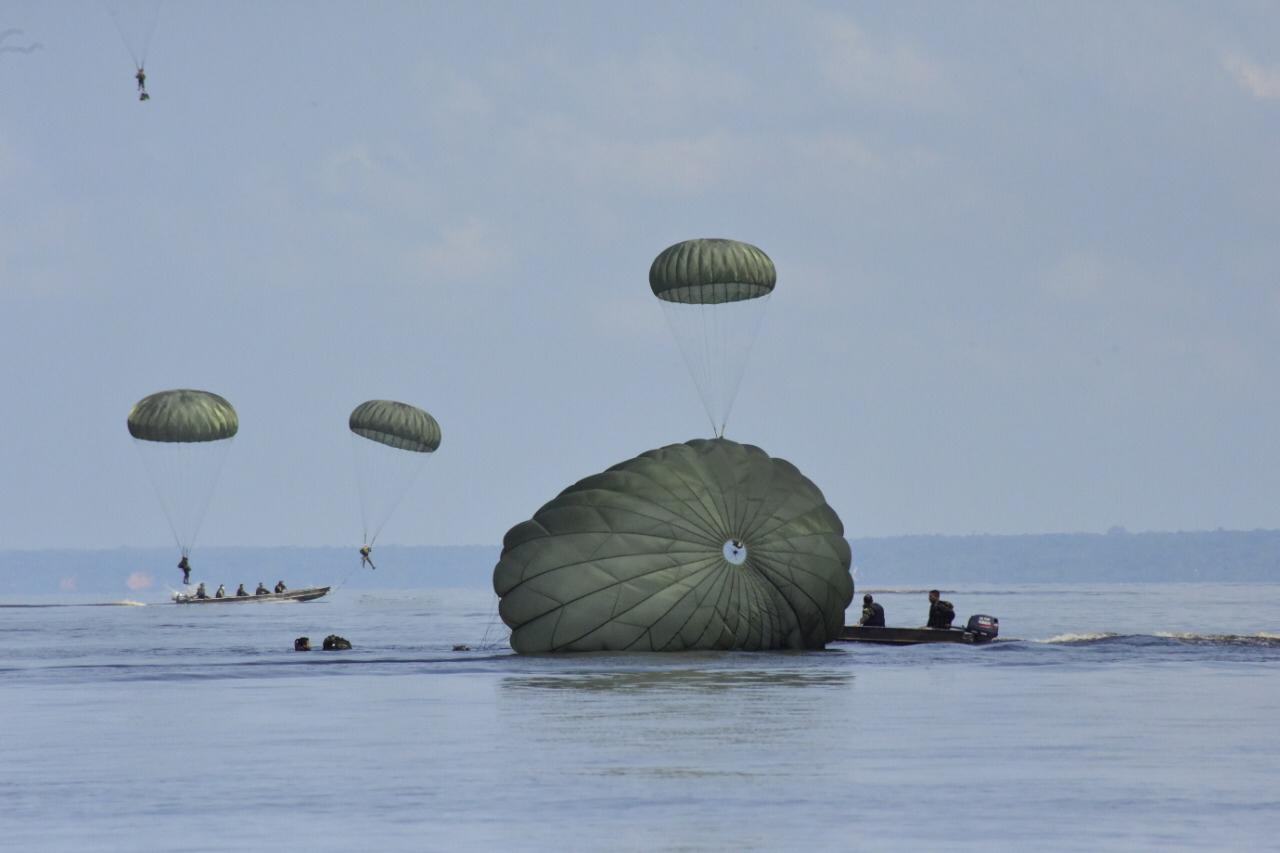 No dia de hoje, 12 de setembro, as 09:30hs, um contingente do 27º Batalhão de Infantaria Pára-quedista (27º BI Pqdt), da Brigada de Infantaria Pára-quedista (Bda Inf Pqdt), realizou um salto de infiltração sobre um rio, no contexto da Operação Amazônia 2020.