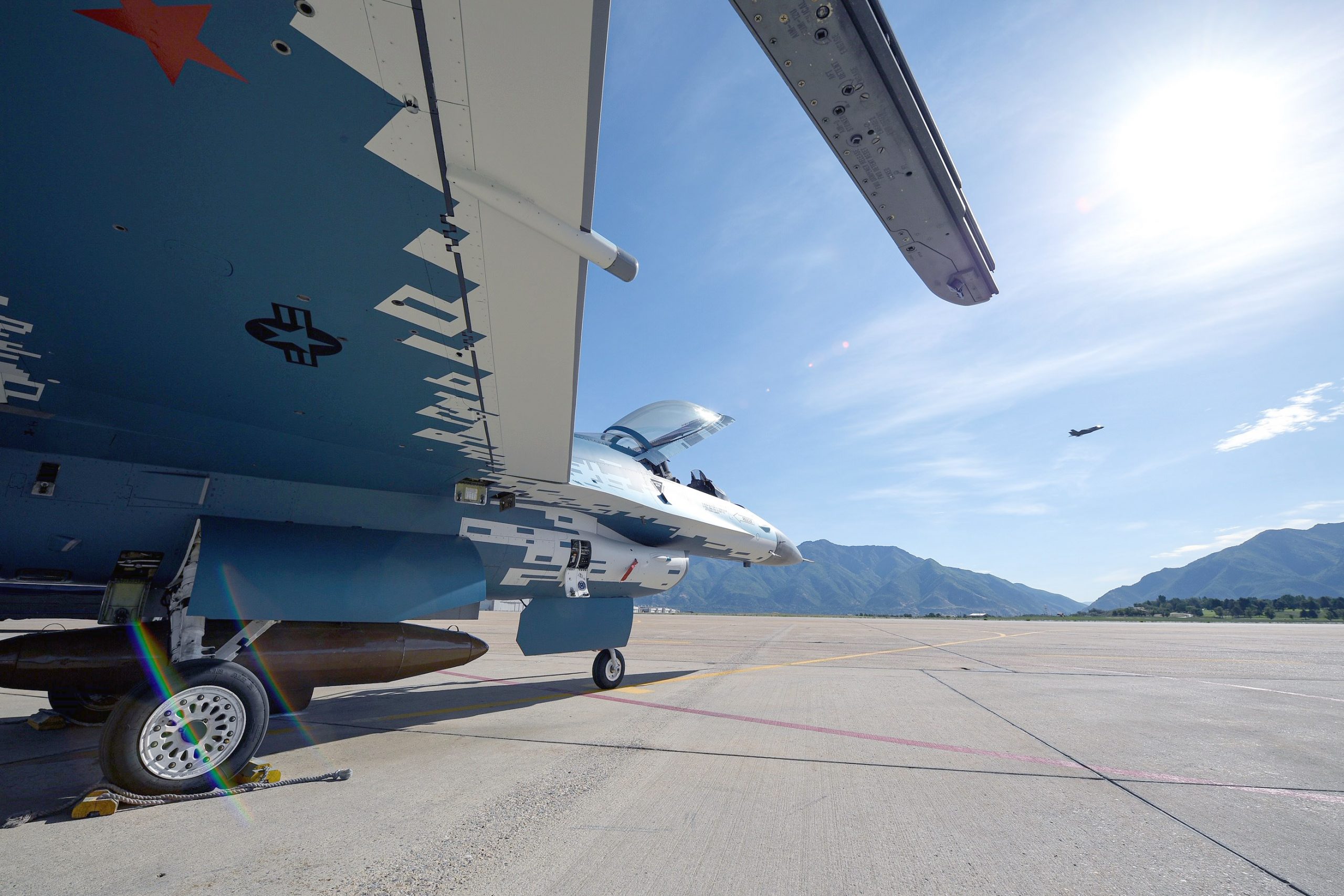 Em tons de azul, cinza e branco, 12 pessoas do 576th Aircraft Maintenance Squadron (AMS) da Base Aérea de Hill, em Utah, trabalharam ao longo de 18 dias para concluir a pintura, cujo nome “Ghost” foi escolhido numa votação pela internet.